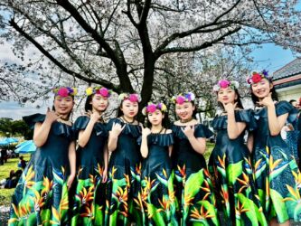 『今年は✨✨派手派手✨✨でいきます』との先生の宣言どおり、色鮮やかなドレスに超ビックな髪飾りをしっかりフィットさせ、サクラに負けずと挑みました🌸🌺🏵️🌸🌺🏵️🌸🌺🏵️